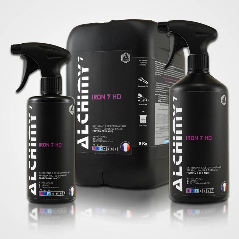 Alchimy7 Iron 7 HD est un décontaminant ferreux et un nettoyant jantes efficace laissant une finition brillante.